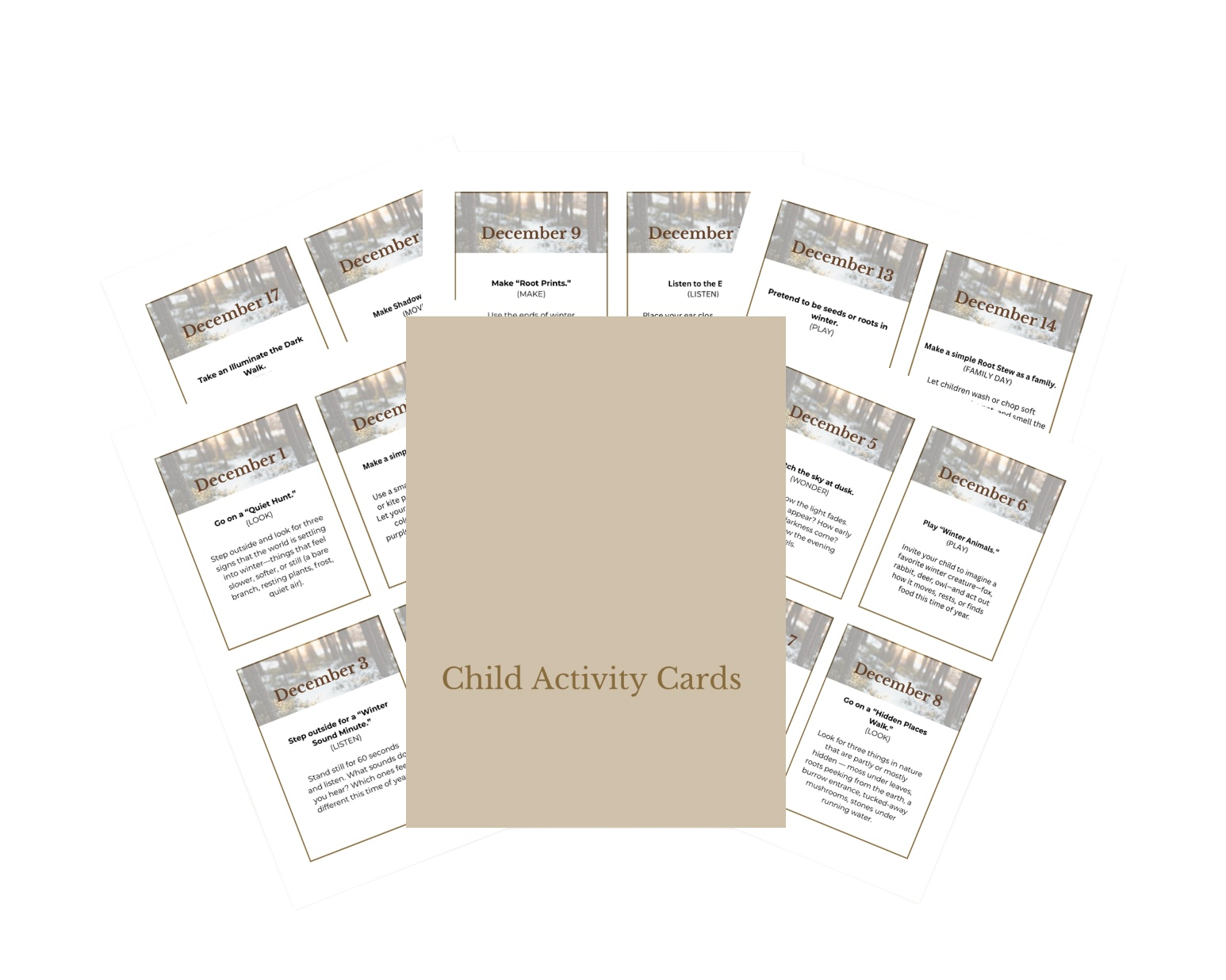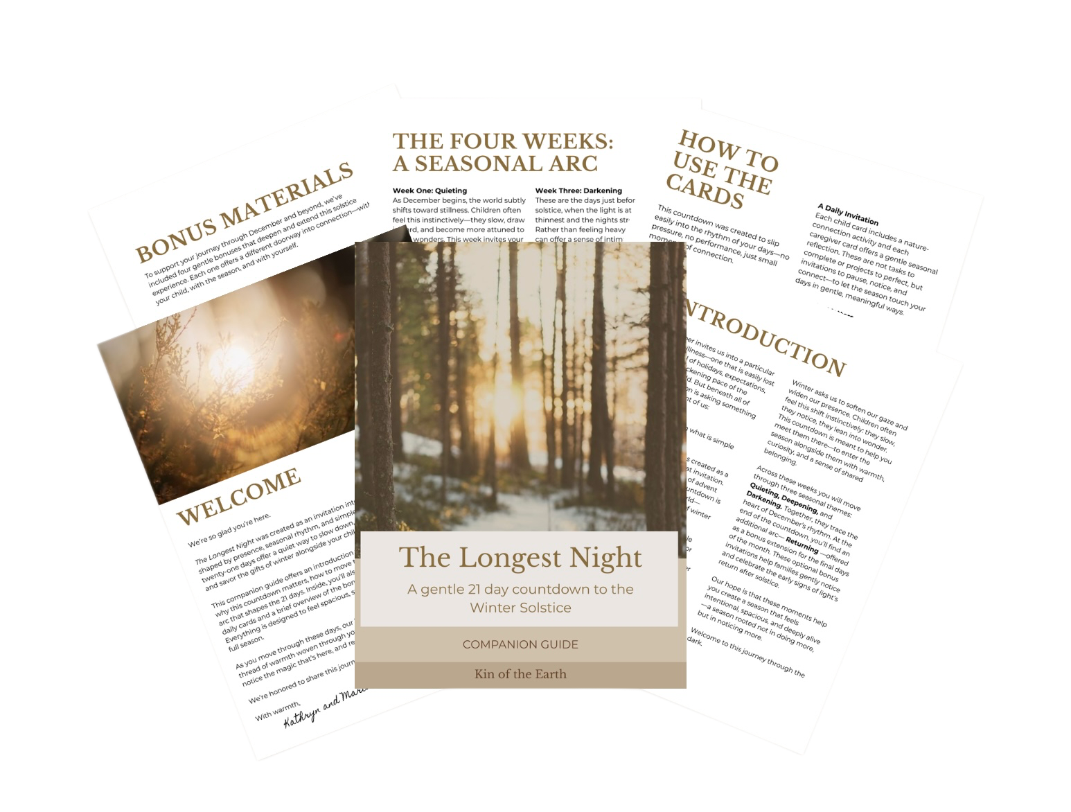 a 21-day arc of child-centered nature invitations and tender caregiver reflections that gently guide families through the darkening days.